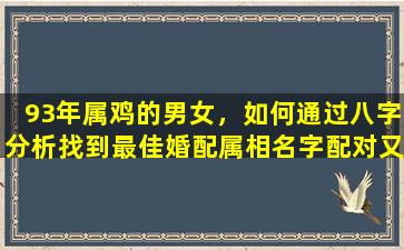 根据八字 🦋 五行相生相克 🦁 原理,93年属鸡人最 💮 佳婚配属相为: