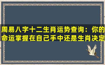 周易八 🐒 字十二生肖运势查询:你的命运掌握在自己手中还 🐡 是生肖决定?