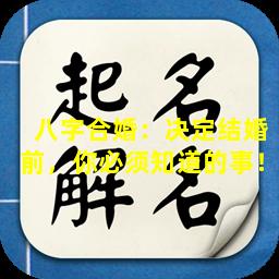 八字合婚 ☘ :决定结 🐬 婚前必 🦟 须了解的事