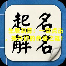 这是一个营销宣传标 🦆 语,用于推销生辰测算服 🐱 务。它,号,召。人们通过简单的点击操作就能揭开自己的命格之谜从而了解自己的命运和运势