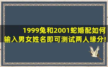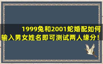 现有的信息中没有提到如何在输入男女姓名 🍀 的情况下测试 1999 年兔和年 2001 蛇的婚姻配对。因此,我。无法提供您所要求的信息